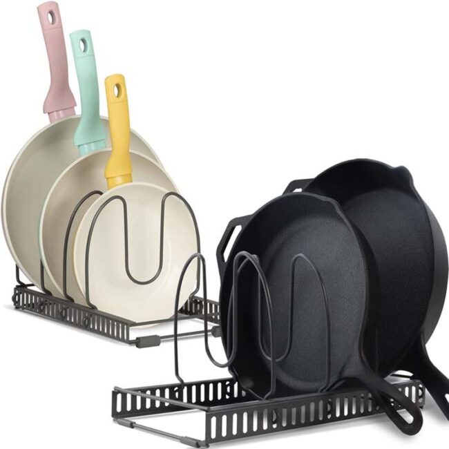 Kitchen enthusiasts love countertop pan organizers that maximize space and minimize clutter.