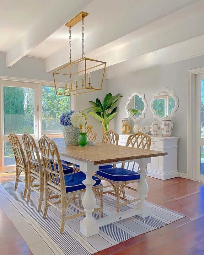 Blue accessories electrify dining spaces with effortless charm and personality.