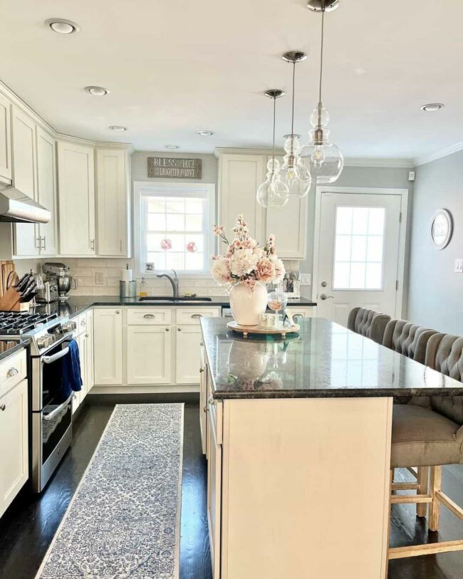 Thoughtful design elements transform this kitchen into a comfortable gathering spot for family and meals.