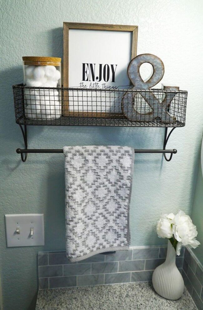 Old wooden pieces can become elegant bathroom organizers that showcase your creative spirit.