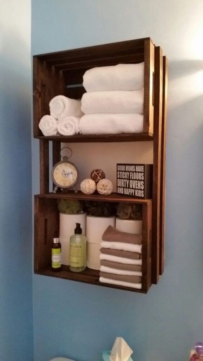Rustic Wooden Crate Bathroom Shelf