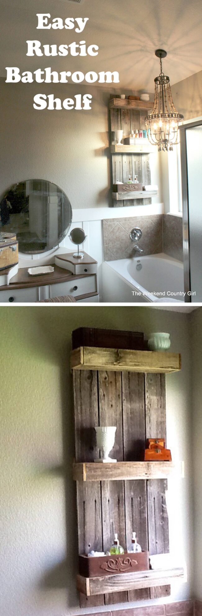 Rustic bathroom shelves bring instant personality to your space with their distinctive leaning design.