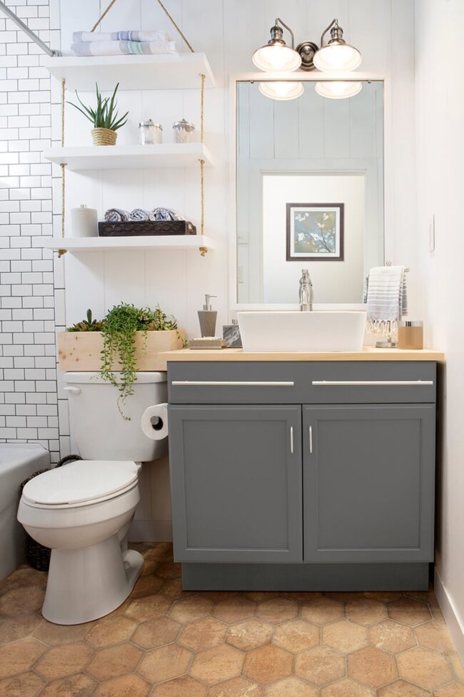 Practical storage meets visual appeal in this clever bathroom upgrade.