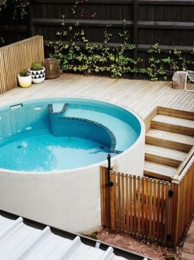 Swimming pools with round shapes integrated into rich wooden decks instantly elevate backyard experiences, offering unique visual appeal that breaks away from standard rectangular designs.