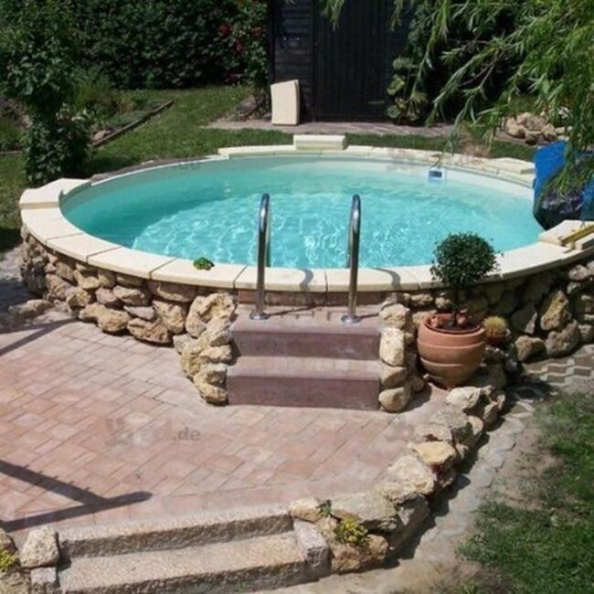 Discover your backyard's hidden potential with a stone-lined circular pool that whispers summer's sweet promise.