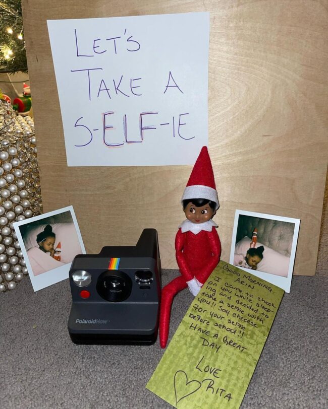 Holiday magic springs from unexpected corners when your elf becomes a cheeky photographer documenting seasonal fun.