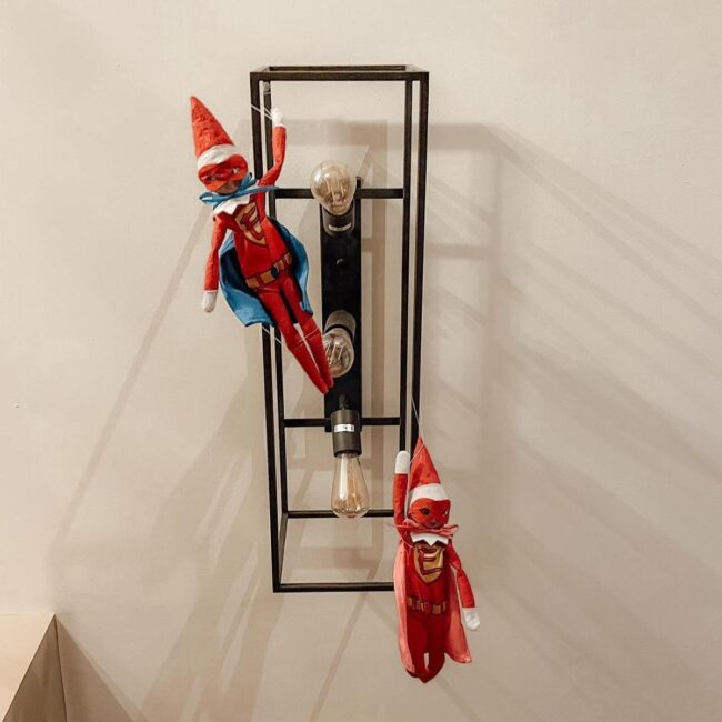 Superhero elves dangle dramatically from your light fixture, bringing unexpected joy and childlike wonder to any space.