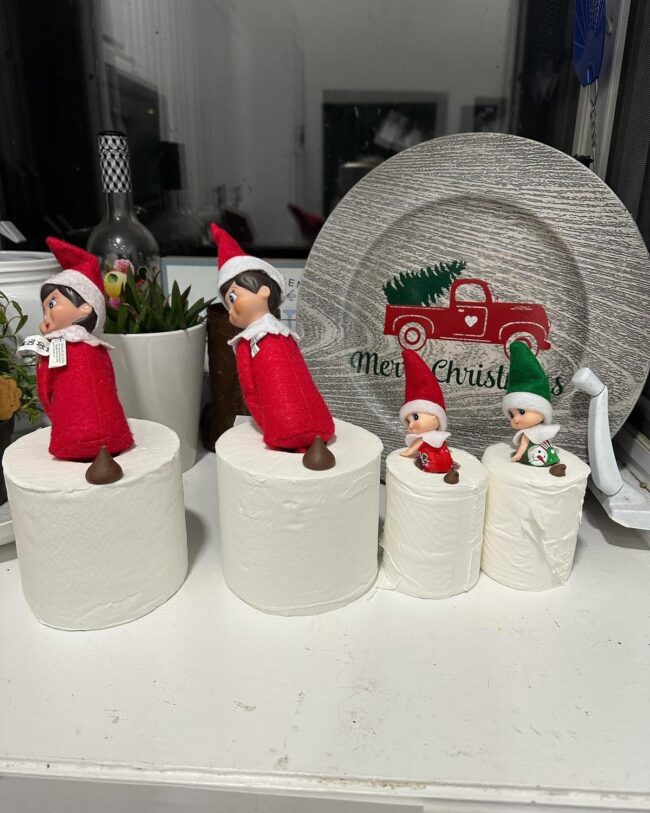 Magical holiday decorations spark joy when little elves surprise you in unexpected places, like perching atop bathroom toilet paper rolls with mischievous grins.