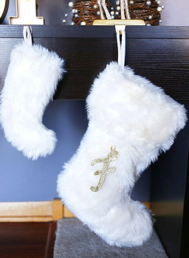 Gold monograms sparkle on carefully chosen stockings, adding personal touches that make your decor uniquely yours.