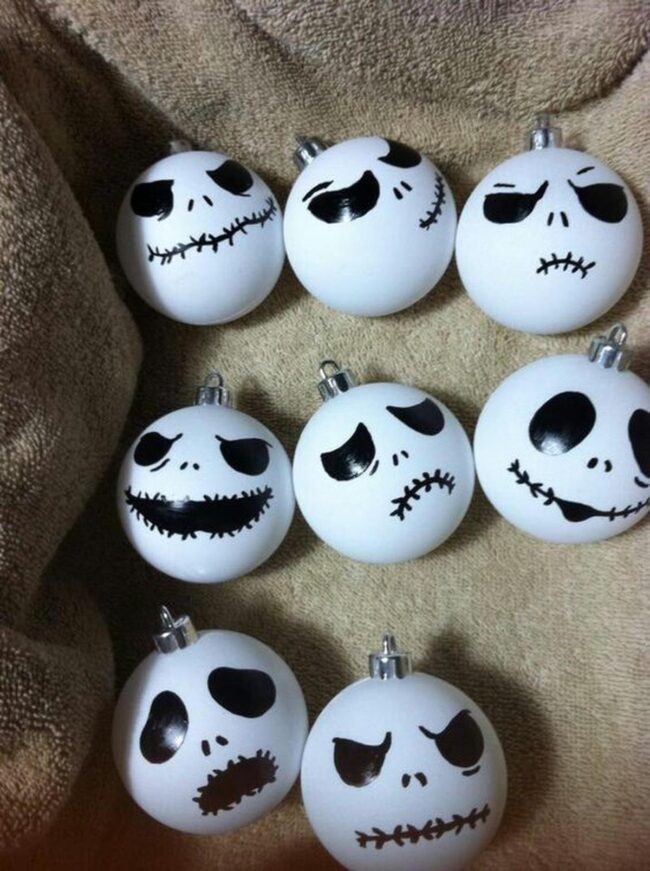 Intricate ornaments featuring haunting designs dance across pale tree branches, creating stunning visual symphonies that break traditional decor boundaries.