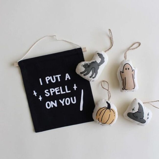 Delicate stitches breathe personality into each unique ornament, turning simple fabric into enchanting Halloween treasures.