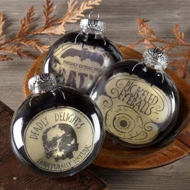 Halloween decor bursts with personality when glass ornaments become your centerpiece conversation starter.