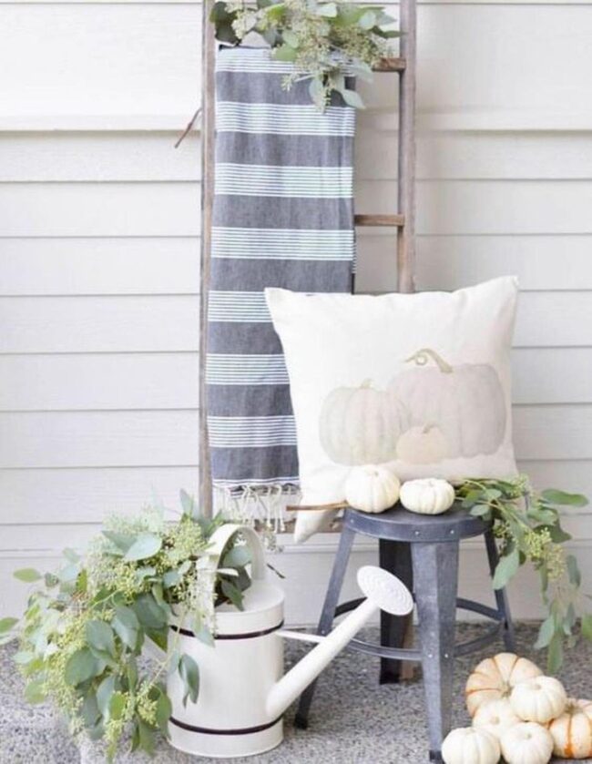 Scattered white pumpkins bring subtle seasonal magic without overwhelming your room's gentle personality.
