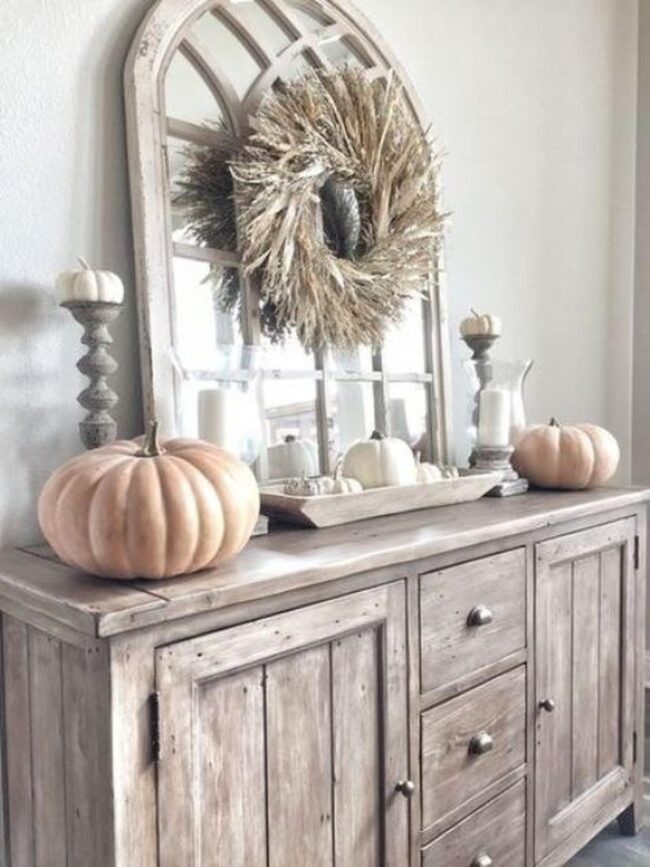 Wooden sideboards with weathered finishes invite you to embrace autumn's gentle magic right in your own space.