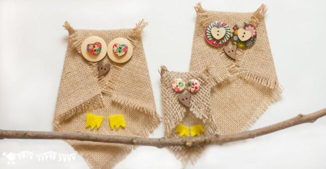 Colorful button eyes peek out from carefully stitched fabric, giving each owl personality and quirky appeal.