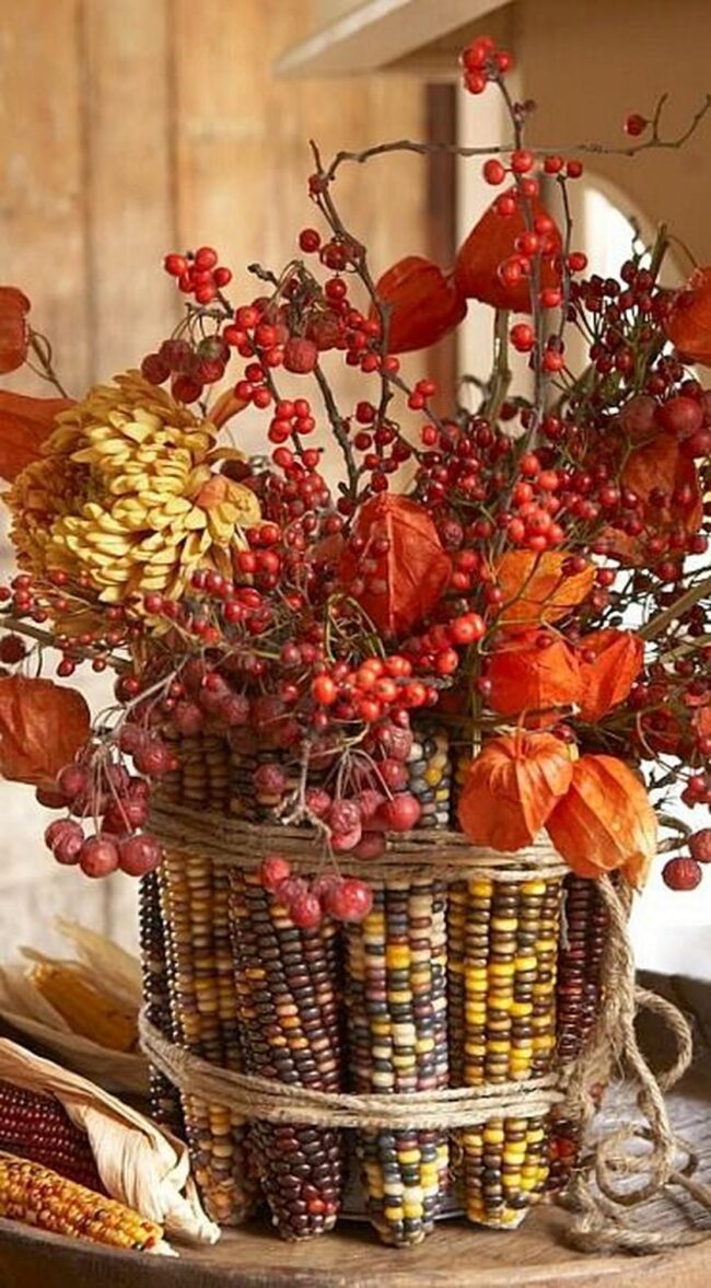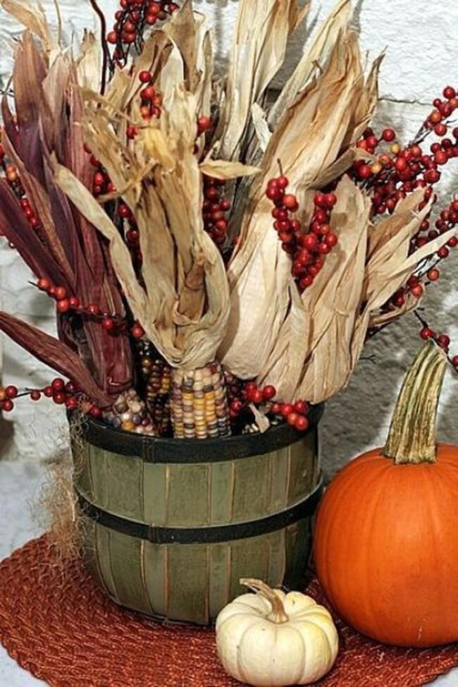 Fall decorations come alive with these stunning corn displays that effortlessly brighten kitchen counters, dining tables, or entryway arrangements.