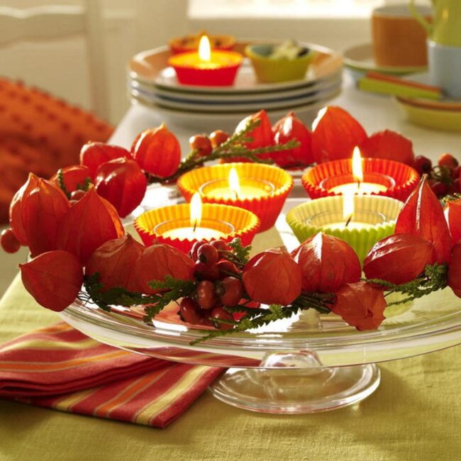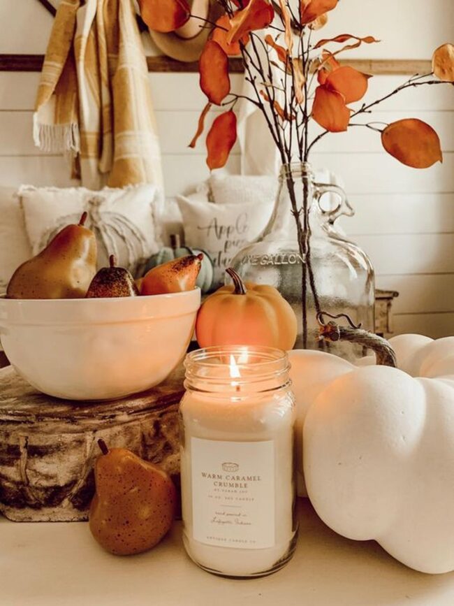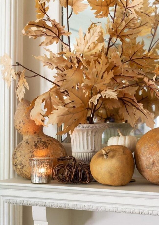Magical autumn moments come alive when soft candles nestle among vibrant orange and crimson leaves, instantly renewing your living space into a welcoming sanctuary.