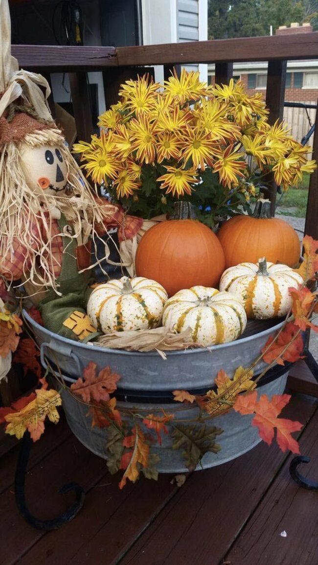 Pumpkins and gourds burst with personality when arranged in an unexpected metal tub, creating an instant autumn mood that welcomes everyone into your space.