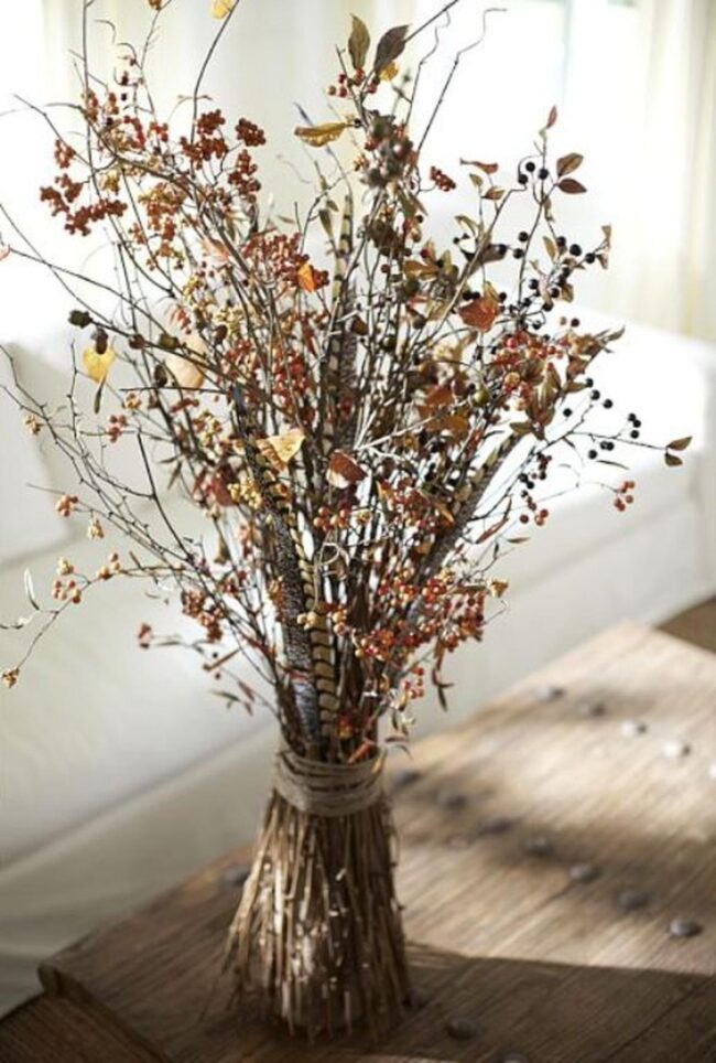Slender branches adorned with berries stretch upward, adding graceful height and intriguing dimension to your seasonal setup.