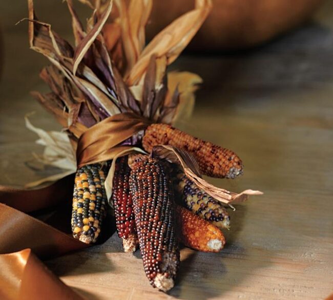 Pumpkins, dried corn, and colorful leaves set the tone for gatherings filled with gratitude and connection.