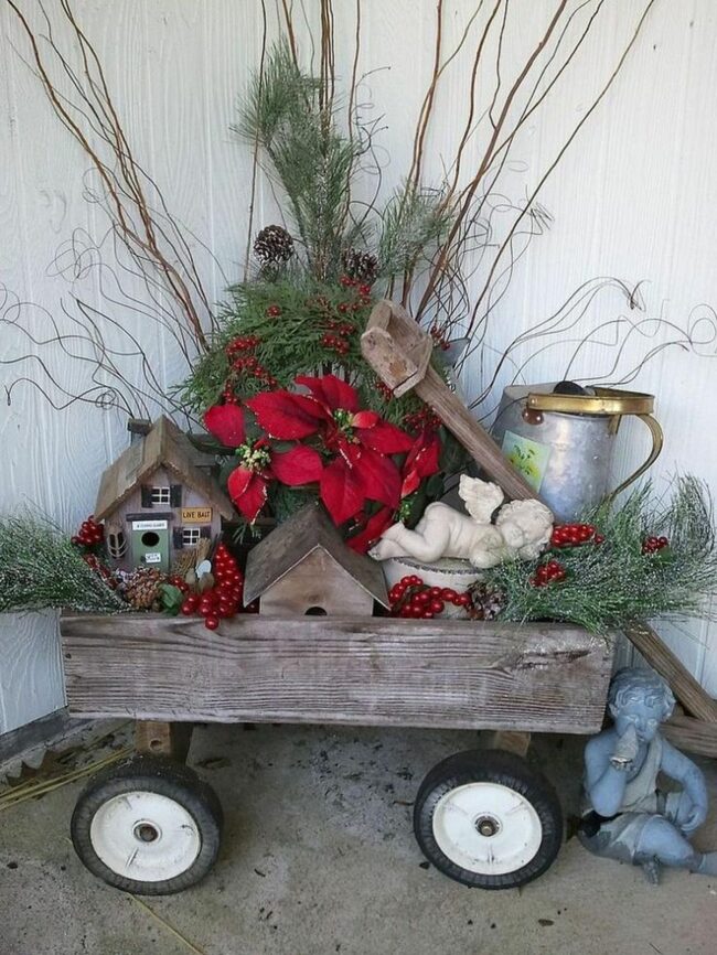 68 Warm Rustic Outdoor Christmas Decor Ideas