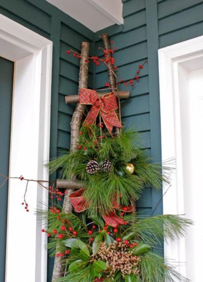 Holiday magic springs to life right at your doorstep with an enchanting outdoor welcome that blends natural charm and festive spirit.