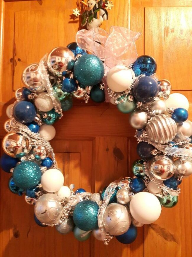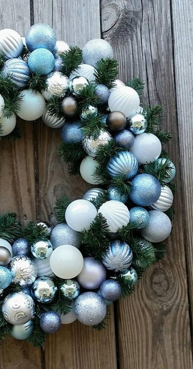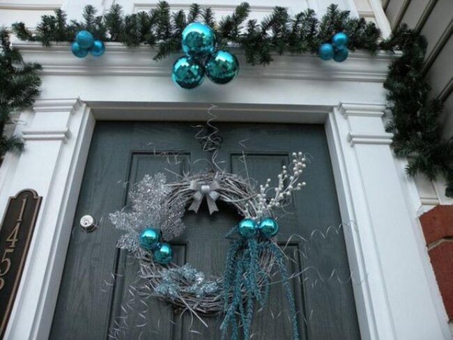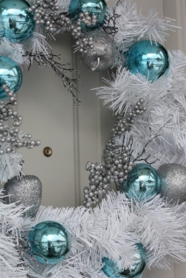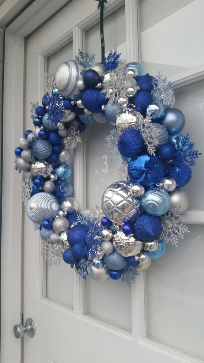 Subtle silver and blue tones provide a stunning alternative to traditional color schemes, ensuring your wreath becomes a conversation piece that guests will absolutely adore.