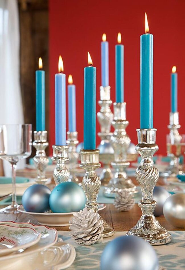 Candle magic starts with silver holders that sparkle like winter moonlight, casting soft shadows across your dining space.