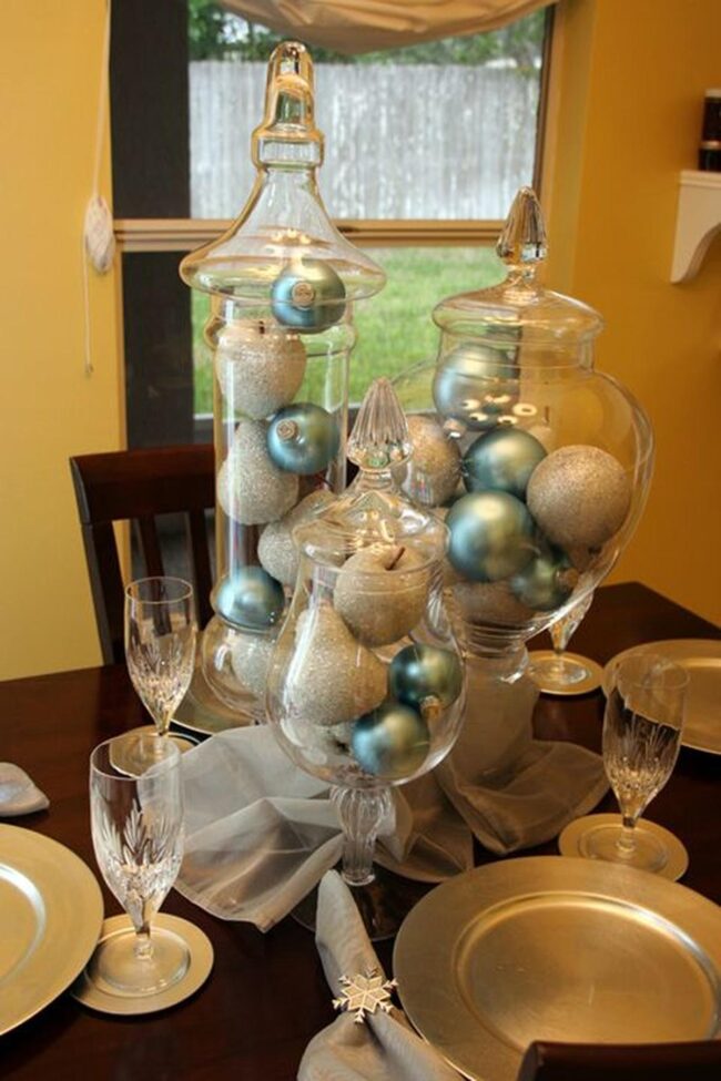 Glass bowls filled with glittering decorations reflect magical patterns that renew ordinary spaces into extraordinary scenes.