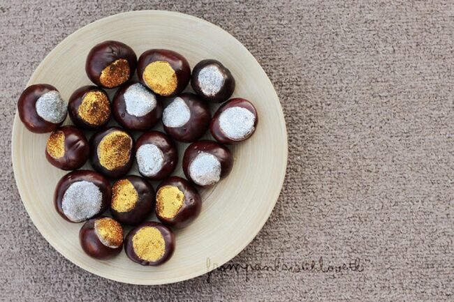 Chestnuts change from ordinary nuts into dazzling art pieces through magical metallic touches that spark instant wonder.