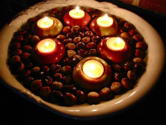 Seasonal decor bursts with charm when you combine chestnuts and candleholders in a stunning display that instantly elevates your living space.