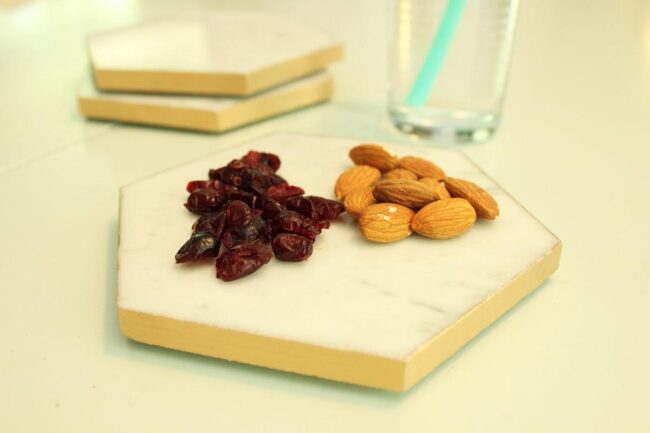 Pairing these exquisite coasters with gourmet snacks like dried cranberries and almonds adds an extra layer of sophistication to your entertaining setup.