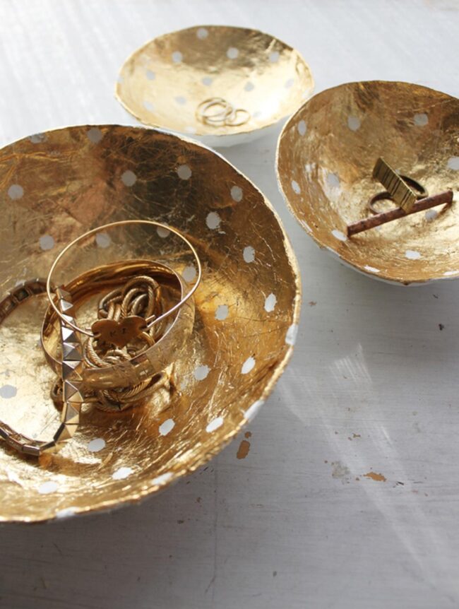 Use your gilded creations to hold jewelry, serve treats, or accent tabletops with understated glamour.