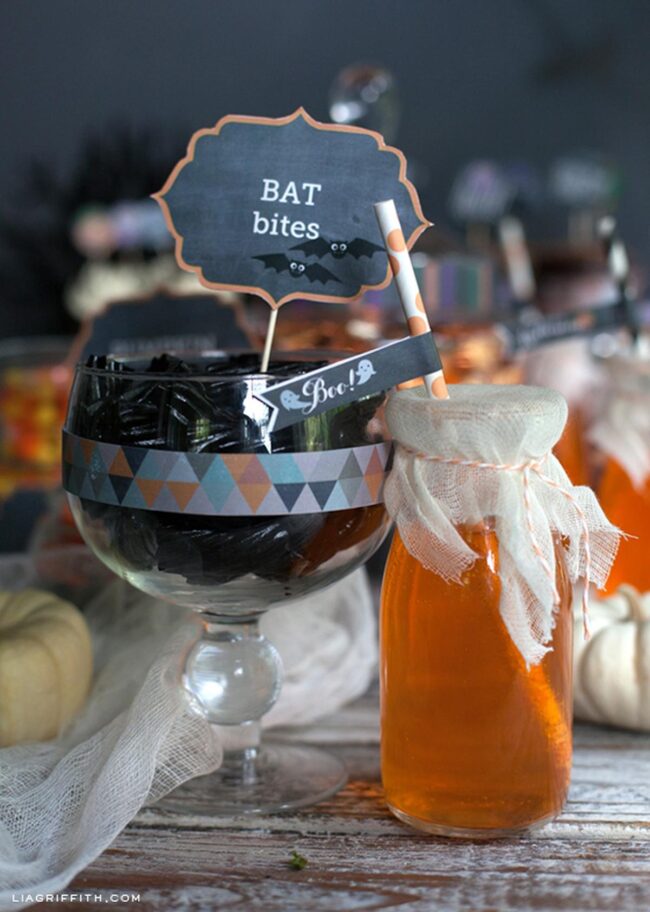 Scattered candy corn and seasonal treats around your centerpiece build inviting layers of Halloween spirit.