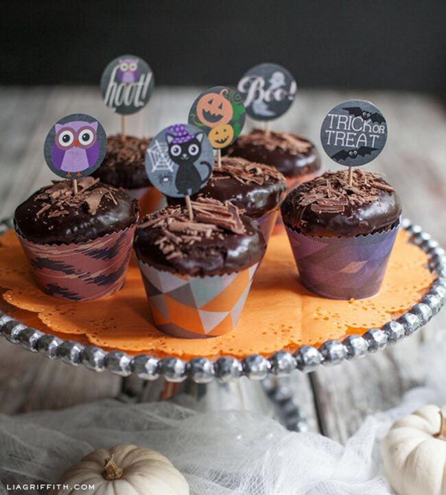 Halloween party treats get an instant wow factor with darling cupcake toppers that scream festive fun.