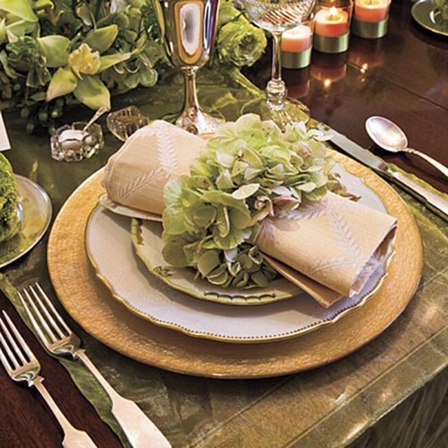 Blending various shades of green adds sophistication while keeping the table feeling relaxed and cozy.