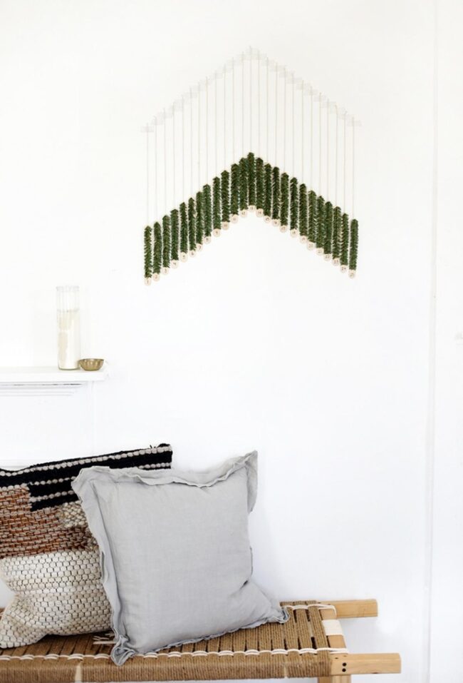 Simple wooden branches mount elegantly, serving as natural hangers for miniature seasonal treasures.