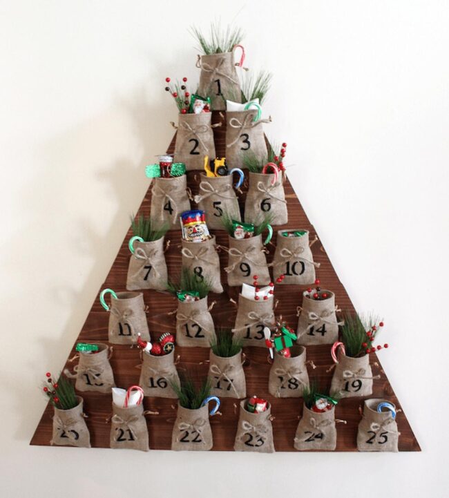 Soft burlap bags hang gracefully, each numbered pocket promising daily surprise and excitement.