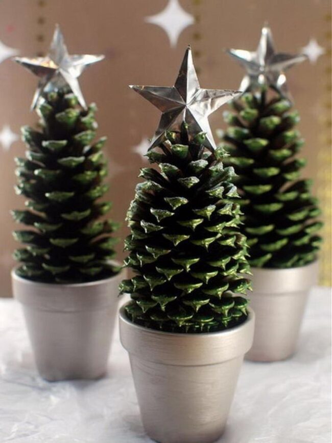 Pine cone trees sparkle with festive magic, turning ordinary spaces into winter wonderlands.