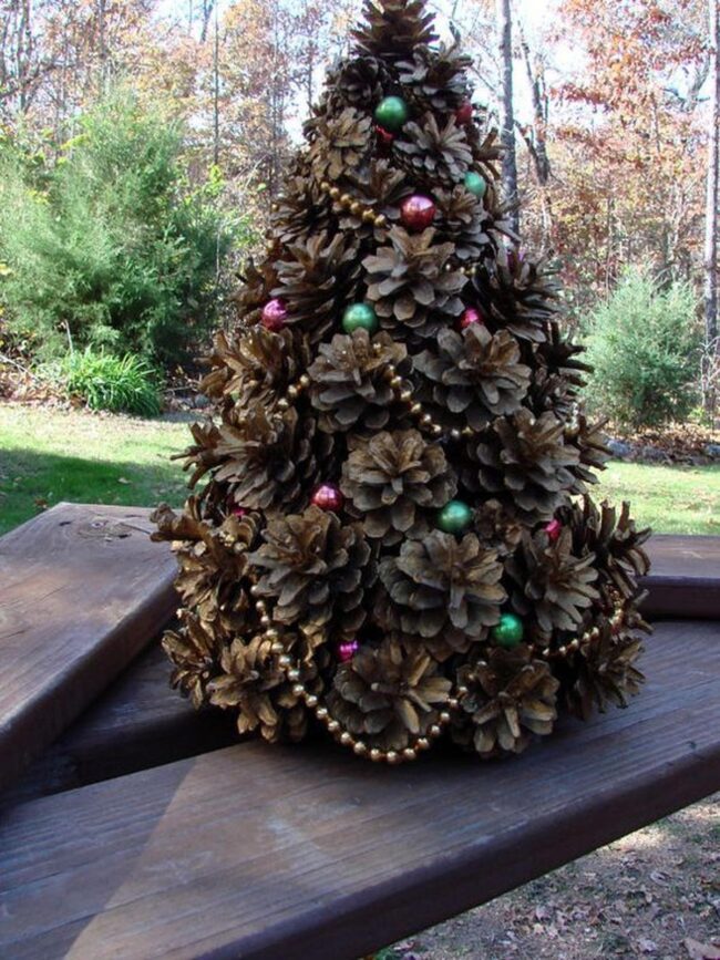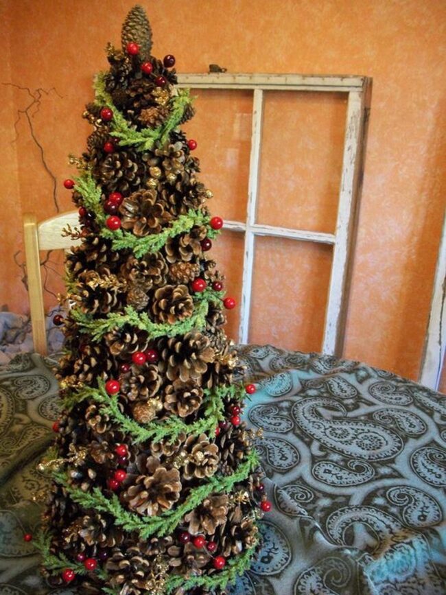 15 Rustic Natural Pinecone Christmas Tree Decorating Ideas