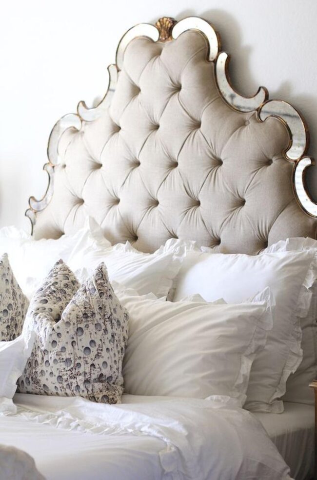 Towering tufted headboards rise dramatically against deep backgrounds, adding richness and character to every corner.