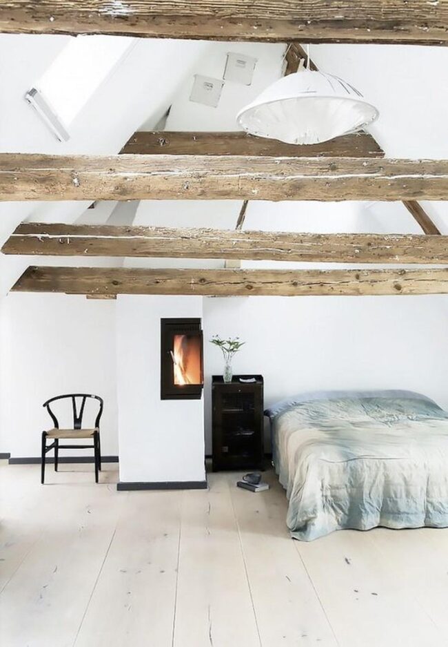White walls and soft bedding invite peaceful moments in bedroom spaces, while wooden fireplaces add instant character and comfort to your personal retreat.