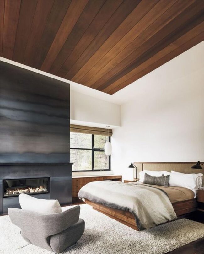 Dark wooden walls wrap your bedroom in natural richness, inviting you to sink into pure relaxation.