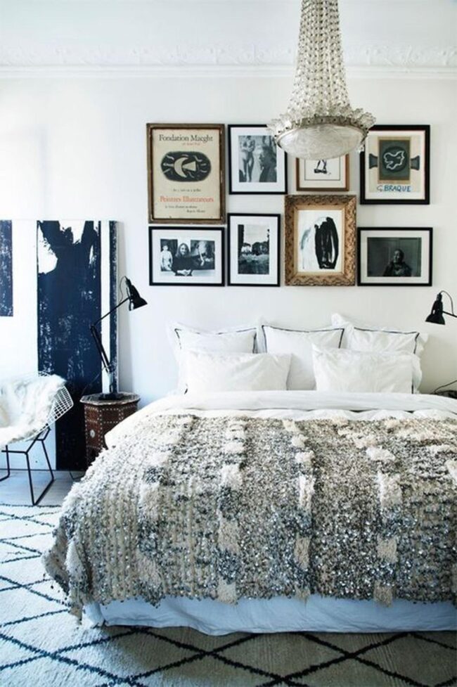 Thoughtful art selections hanging near the headboard speak volumes about personal style without shouting for attention.