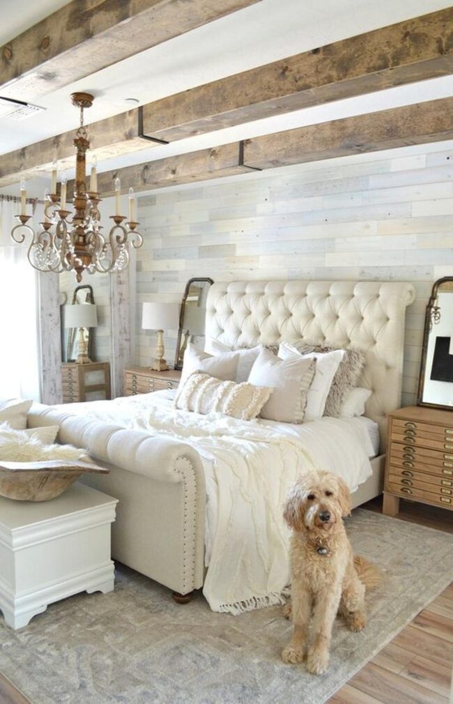 Your bedroom converts a personal paradise where wood ceiling beams dance with matching furniture, weaving natural charm and sophisticated comfort.