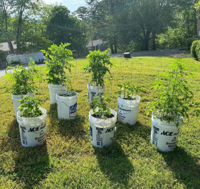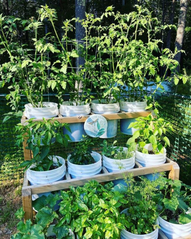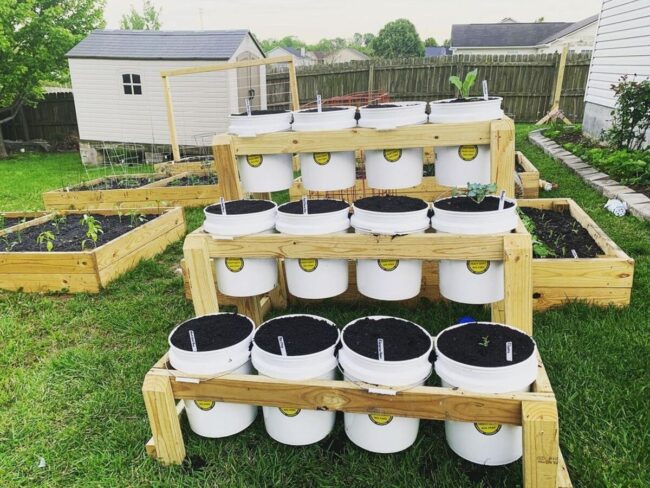 Affordable and adaptable, this gardening method requires basic supplies like buckets, soil, seeds, and basic tools to get started.