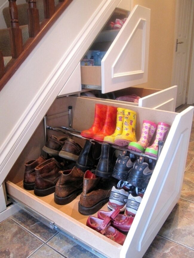 Compact living areas benefit most from these hidden storage gems, allowing residents to stash multiple pairs without cluttering floor space.