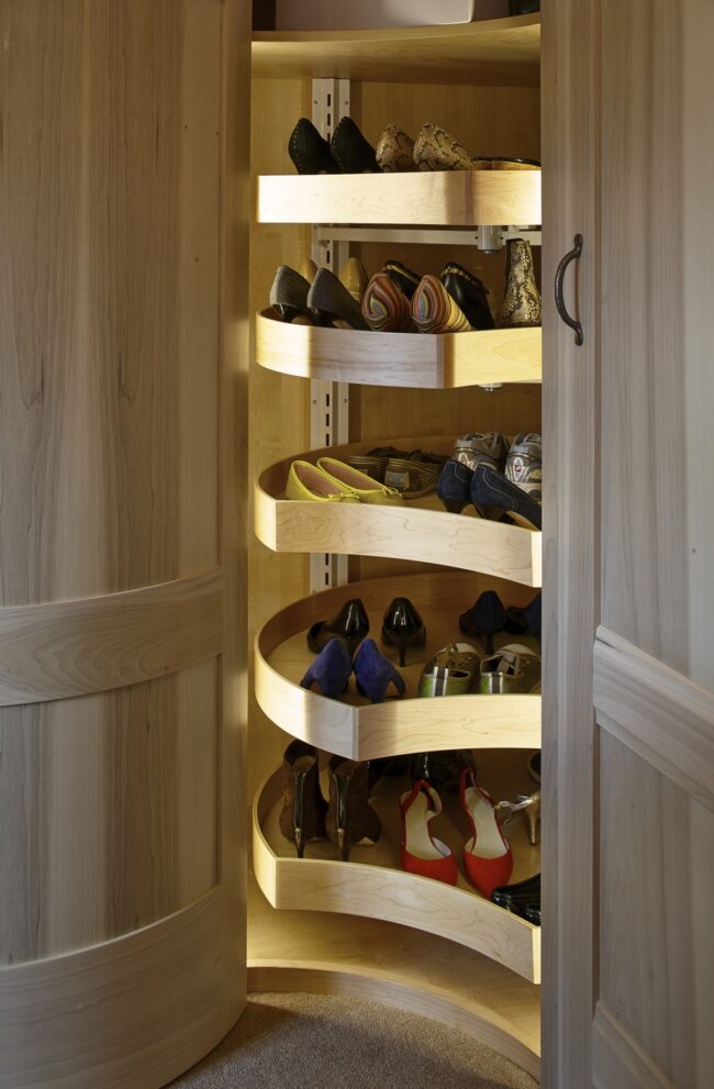 Modern spaces welcome these innovative storage solutions that spin smoothly to reveal every pair instantly.