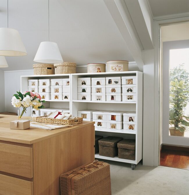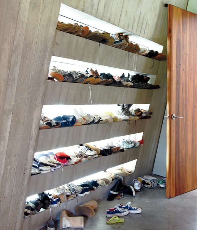 Fine craftsmanship transforms ordinary shoe storage into a stylish statement piece.