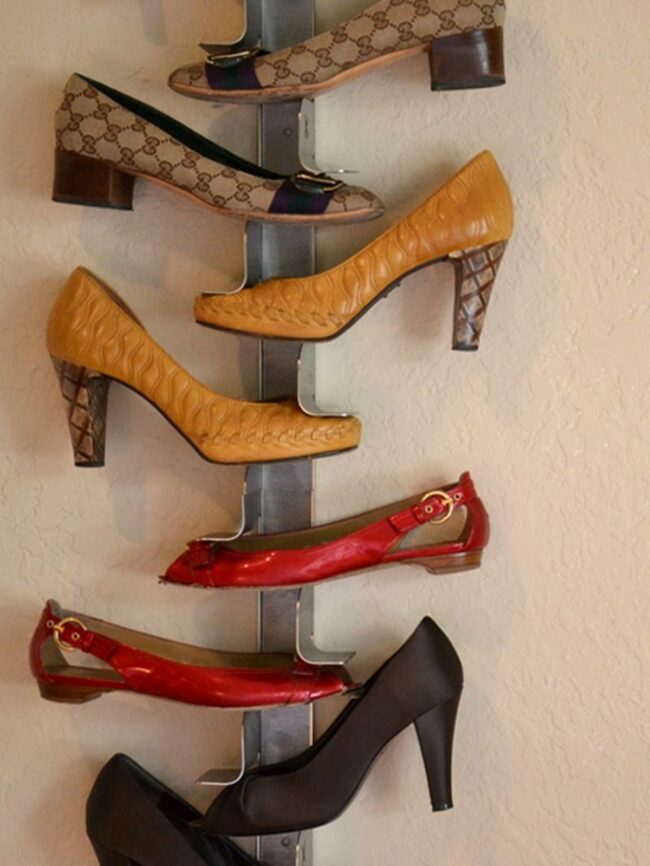 Metal shoe mounts revolutionize storage by displaying your footwear collection with industrial elegance and maximum efficiency.